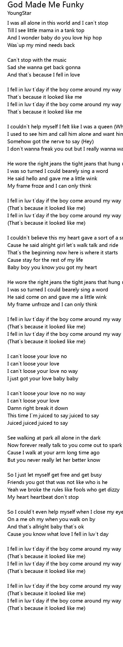 | I fell in luv t`day if the boy come around my way | |