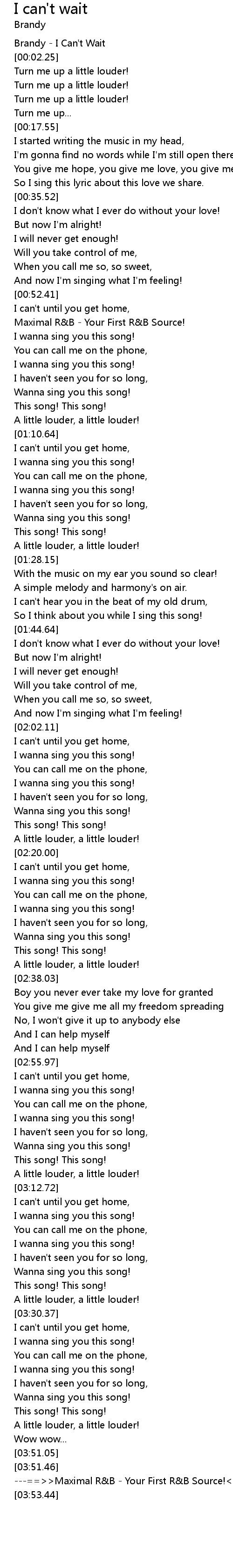 | [00:01.25] | Brandy - I Can't Wait |