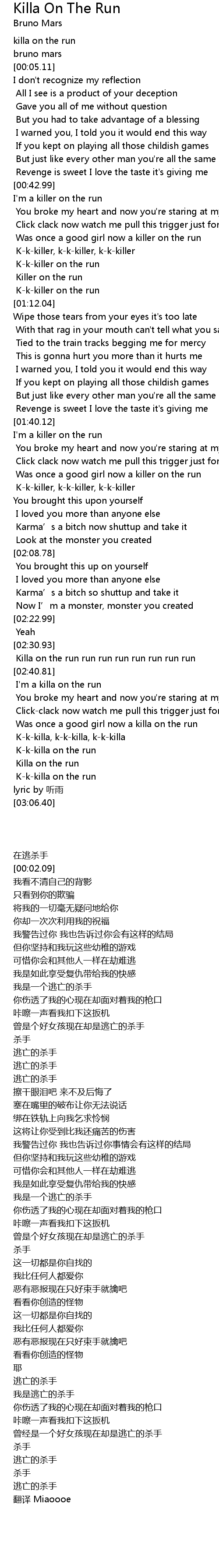 | [02:39.47] | Killa on the run run run run run run run run |