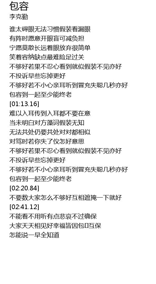 | [02:34.82] | 不要数大家怎么不够好互相遮掩一下就好 |