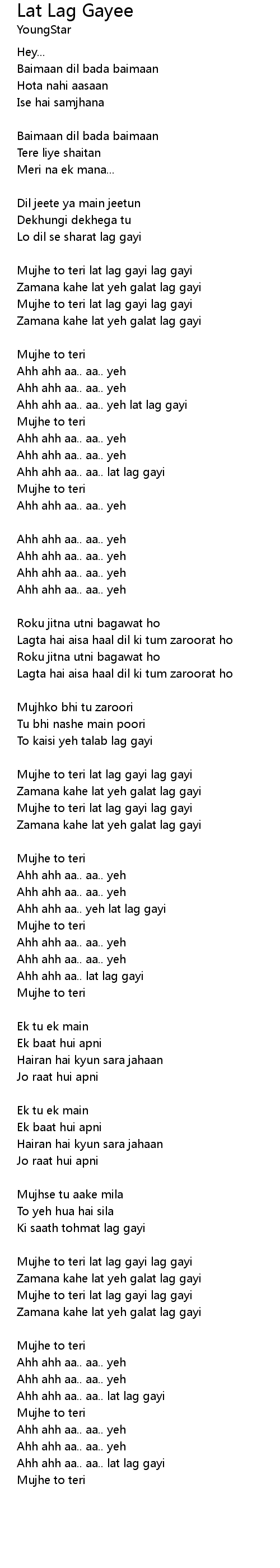 | Ahh ahh aa.. aa.. yeh lat lag gayi | |