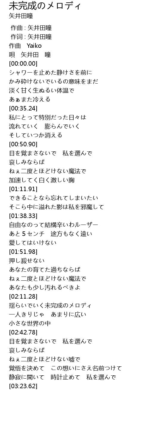 | [00:00.00] | 作曲 : 矢井田瞳 |