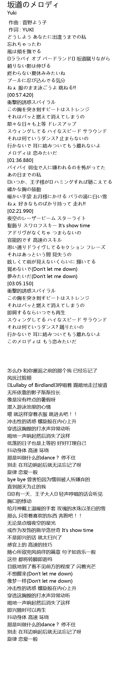 | [00:30.400] | ♪ララバイ オブ バードランド♪ 坂道蹴りながら |