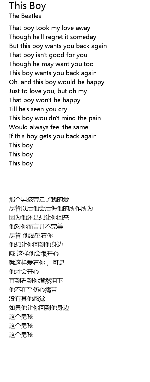 But this boy wants you back again |