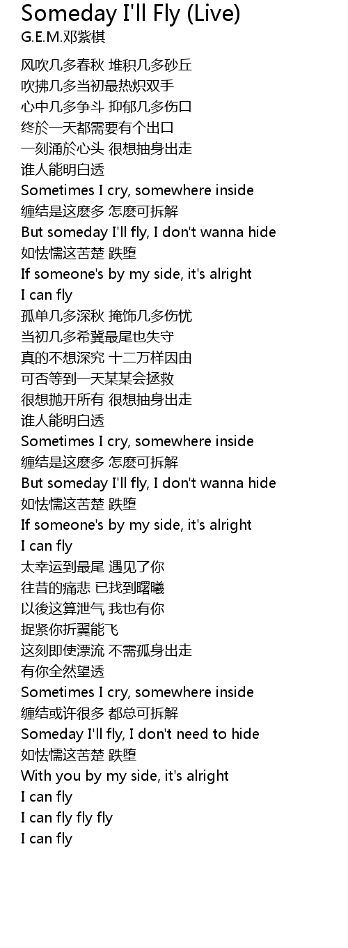 | [00:43.440] | But someday I' ll fly, I don' t wanna hide |