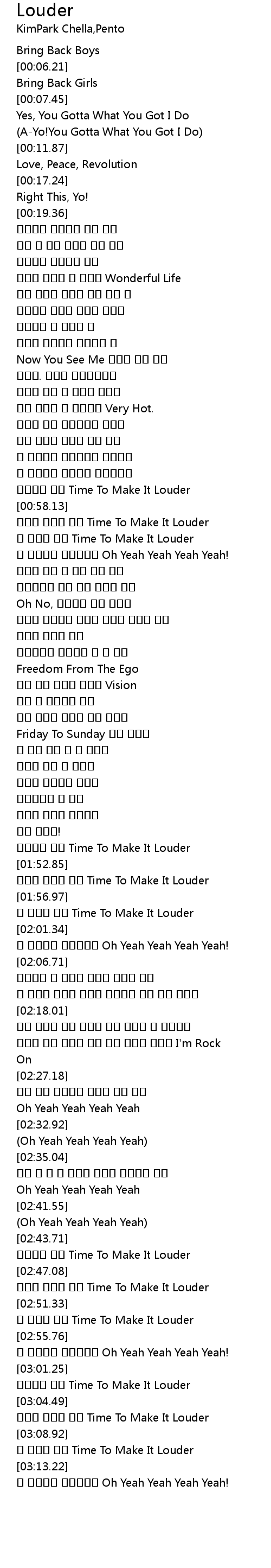 | [03:05.30] | 괜찮아 뭐든지 좋아 Time To Make It Louder |