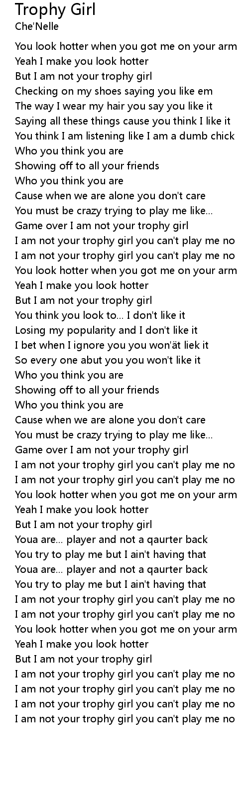 | But I am not your trophy girl | |
