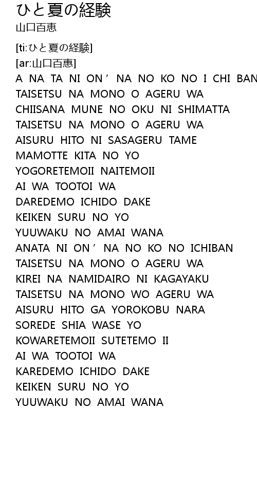| [ti:ひと夏の経験] | |