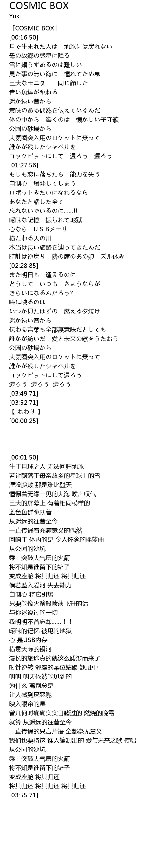 | [00:18.50] | 月で生まれた人は 地球には戻れない |