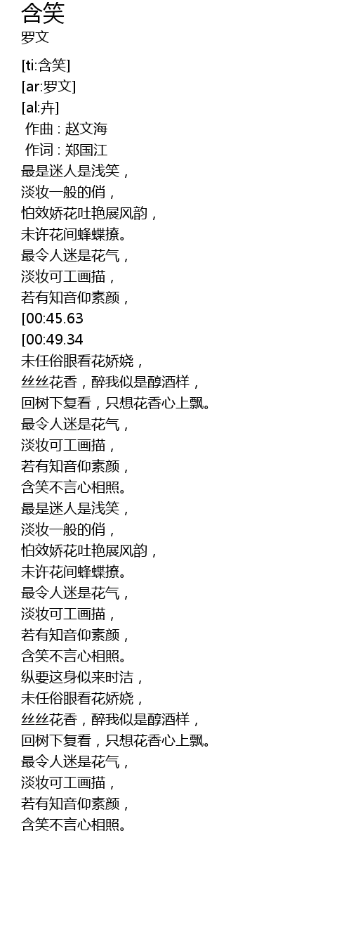 | [00:51.04][00:45.63] | 含笑不言心相照。 |