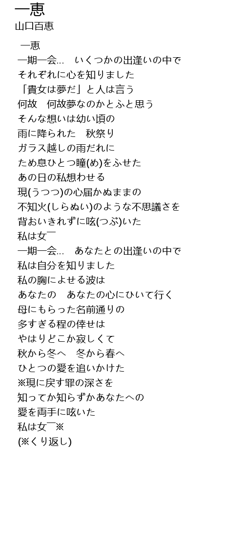 | Artist | 山口百恵 |