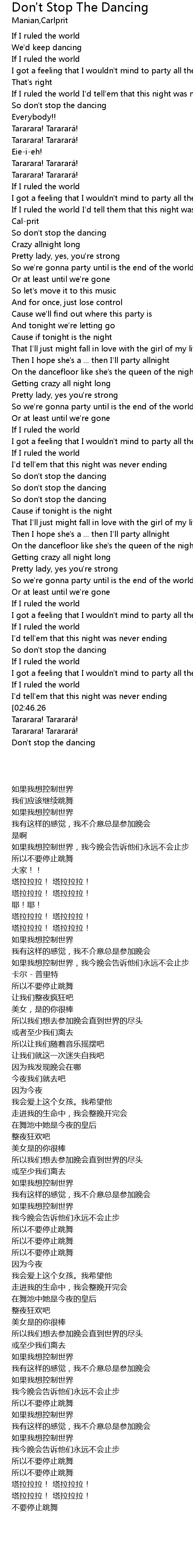 | [02:46.22][02:46.26] | So don't stop the dancing |