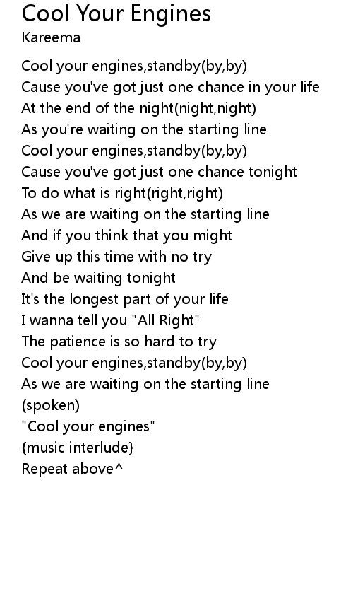 Cool your engines,standby(by,by) |