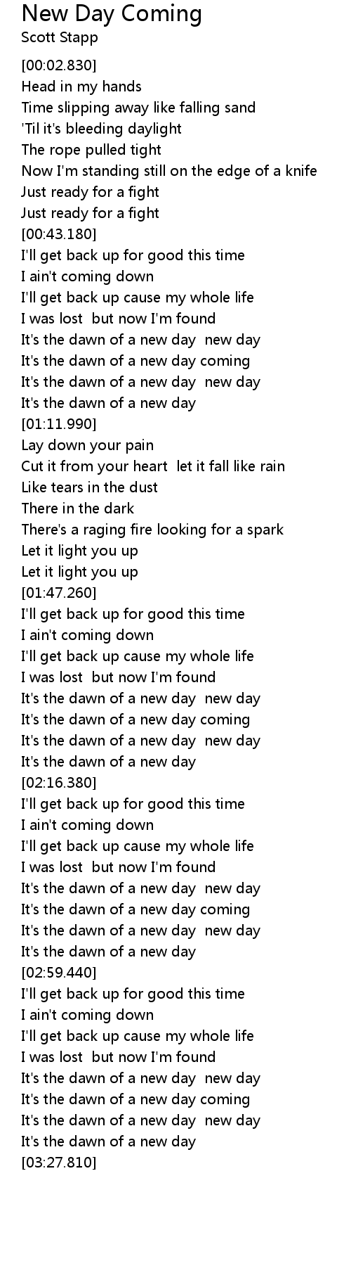 It's the dawn of a new day coming |