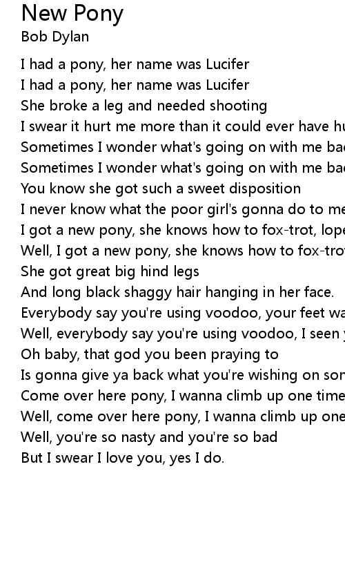 Well, I got a new pony, she knows how to fox-trot lope and pace |