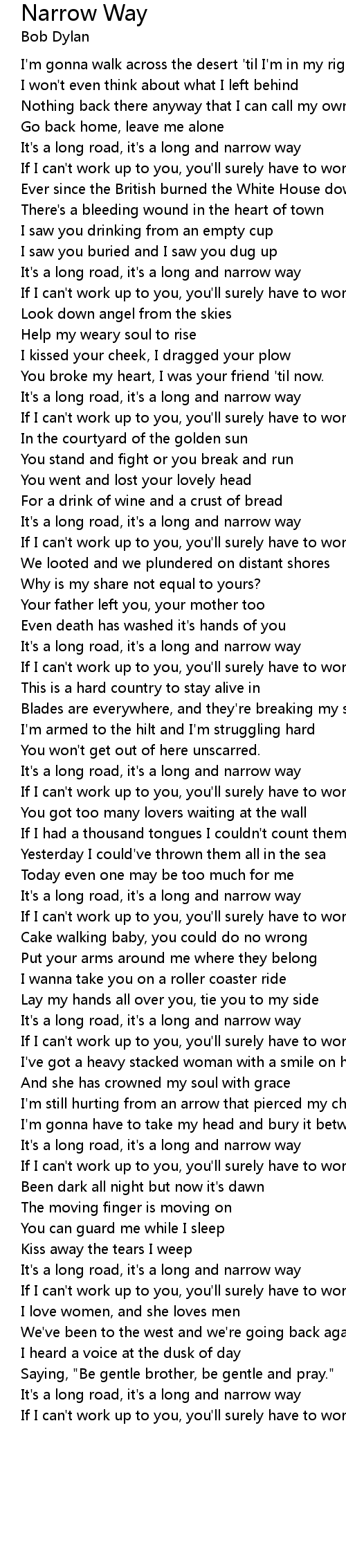 It's a long road, it's a long and narrow way |