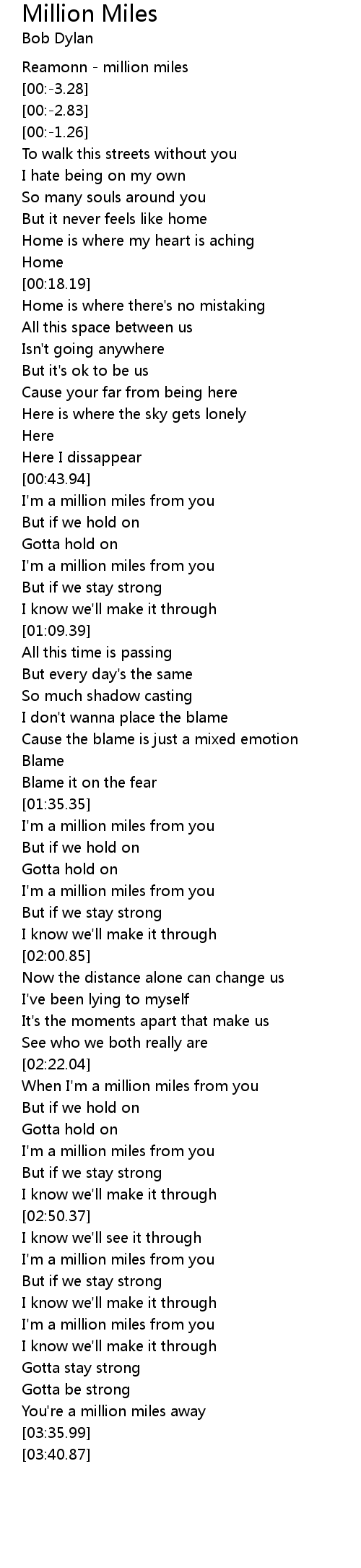 I'm a million miles from you |