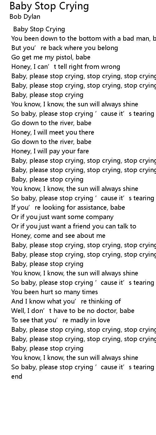 | Baby, please stop crying, stop crying, stop crying | |