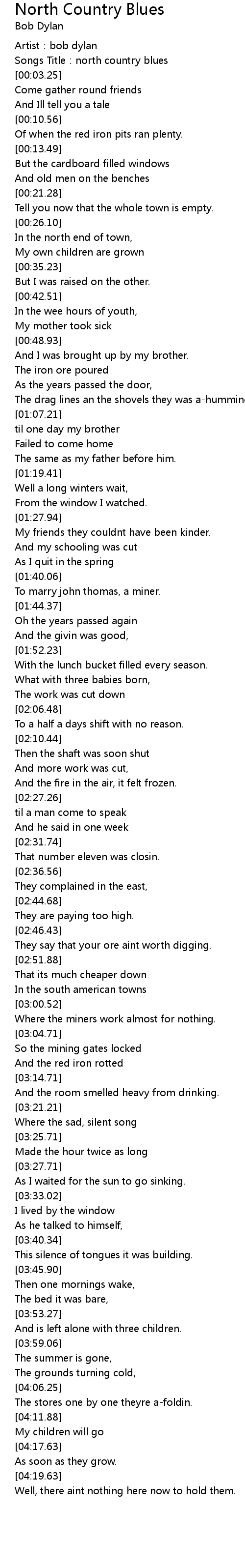 | [00:11.31] | Of when the red iron pits ran plenty. |