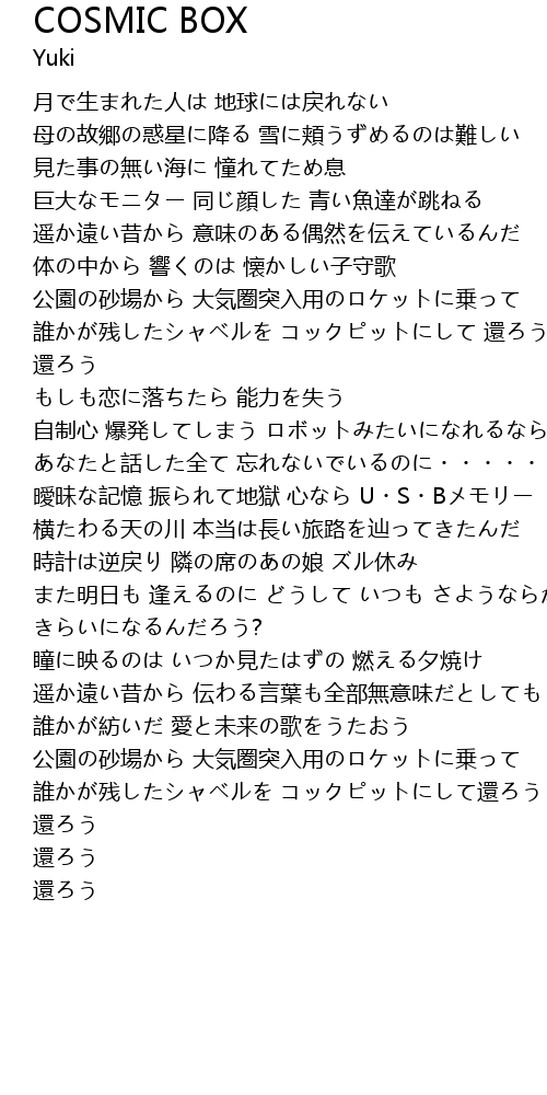 | 体の中から 響くのは 懐かしい子守歌 | |