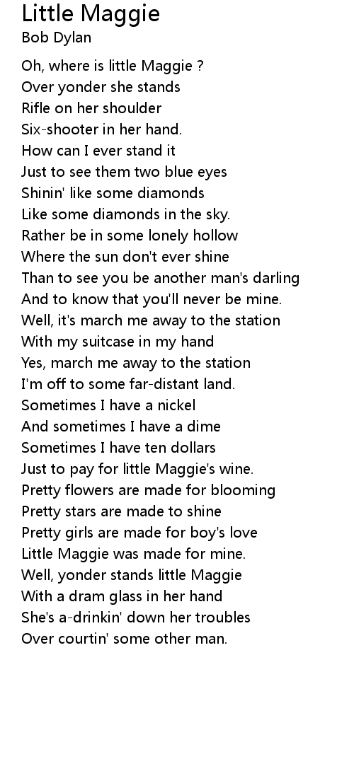 Well, yonder stands little Maggie |