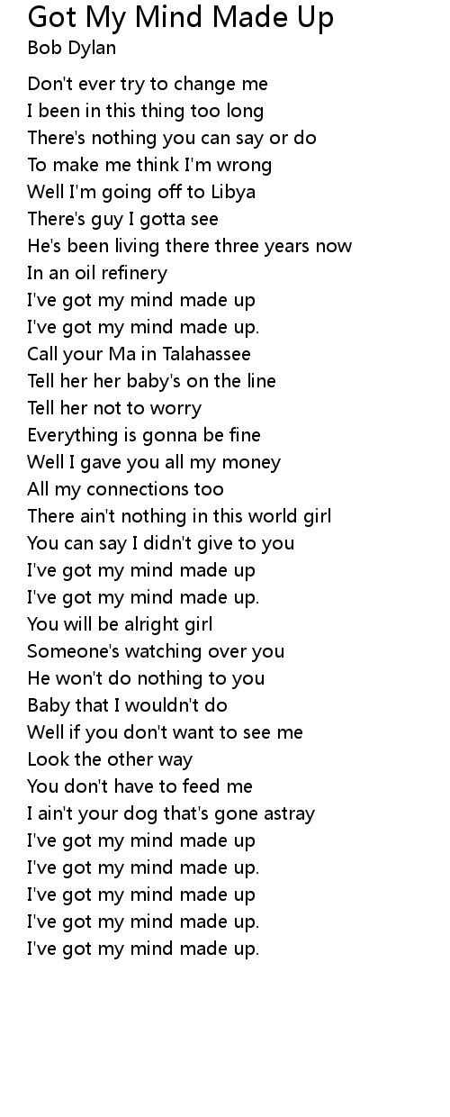 I've got my mind made up |