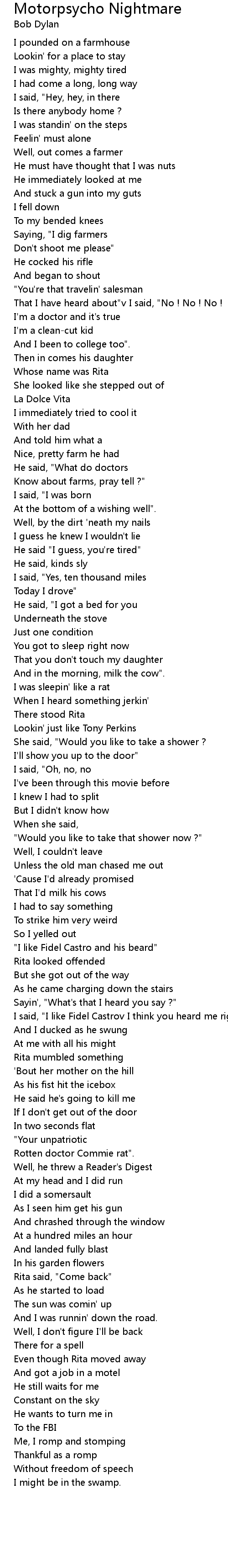 I said, "I like Fidel Castrov I think you heard me right" |