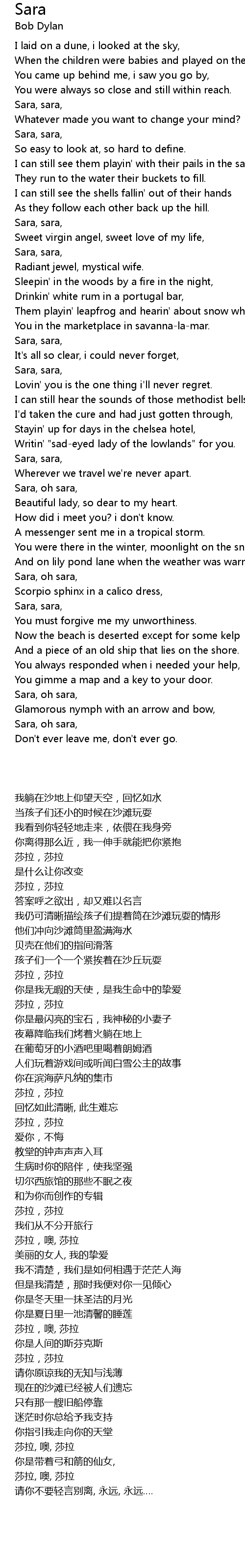 Sara, oh sara, |