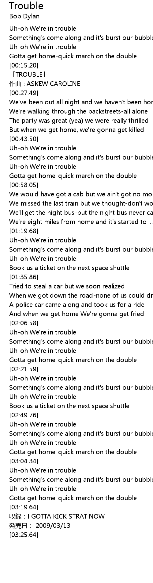 | [00:17.49] | TROUBLE |
