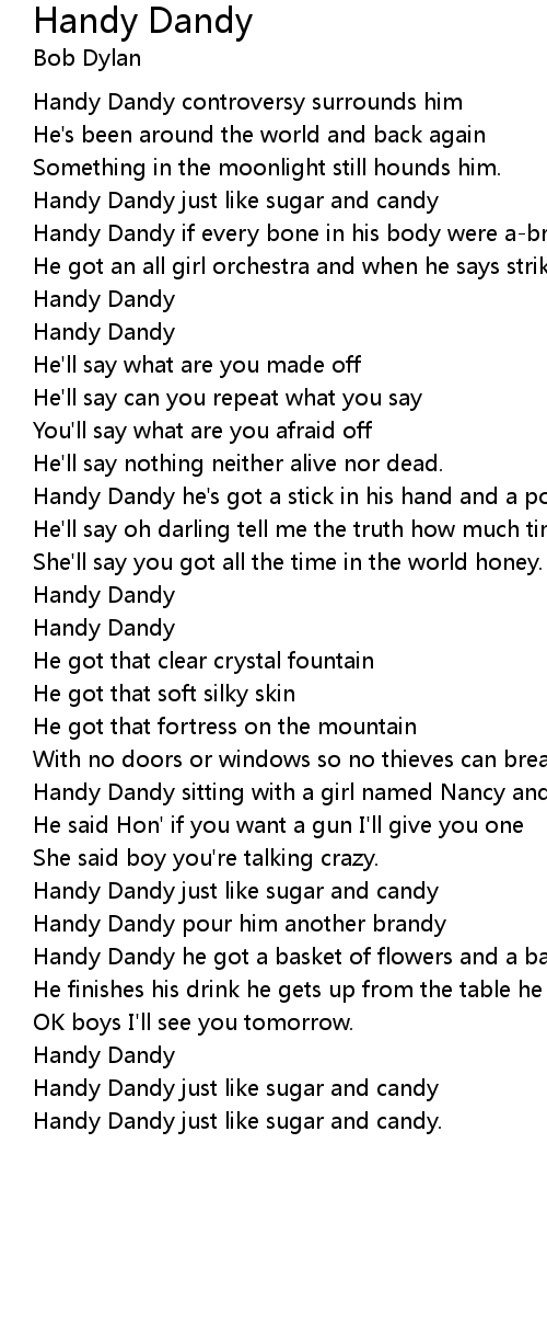 Handy Dandy he got a basket of flowers and a bag full of sorrow |
