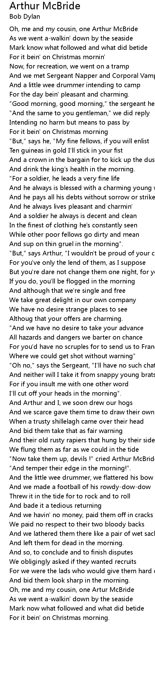 Oh, me and my cousin, one Arthur McBride |