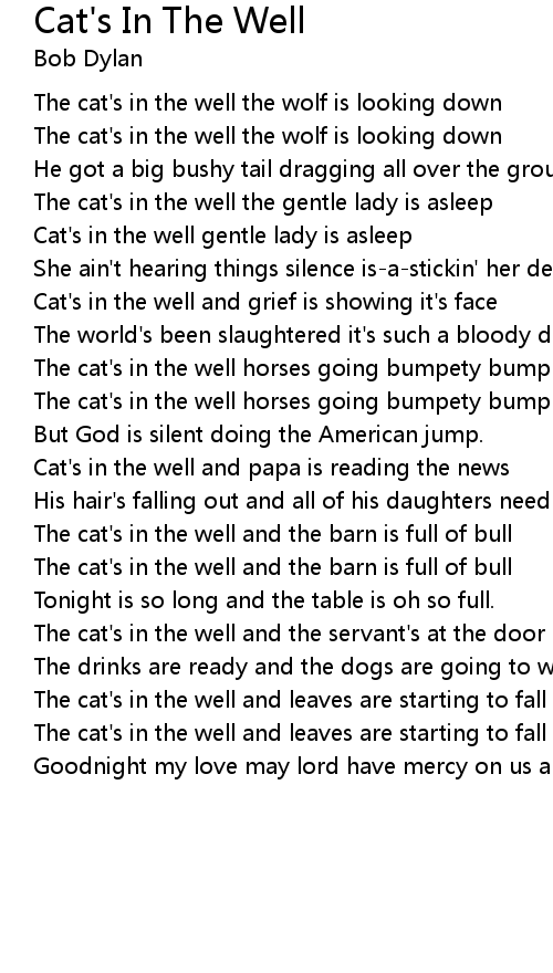 The cat's in the well the gentle lady is asleep |