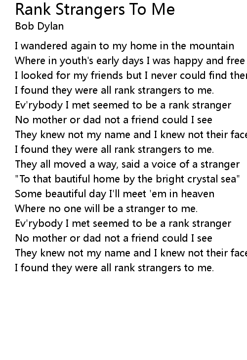 Ev'rybody I met seemed to be a rank stranger |