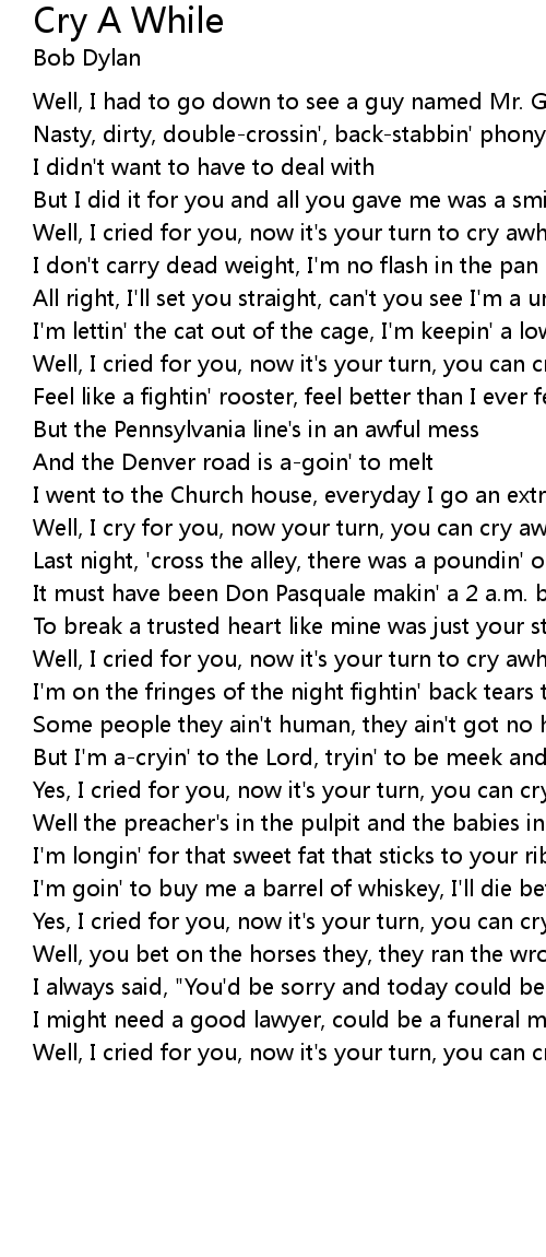 Well, I cried for you, now it's your turn, you can cry awhile |