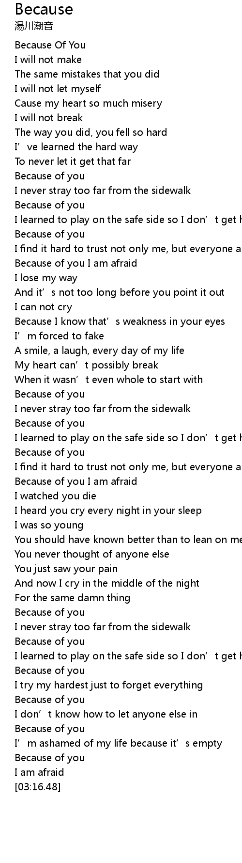 | [00:48.67] | Because of you |