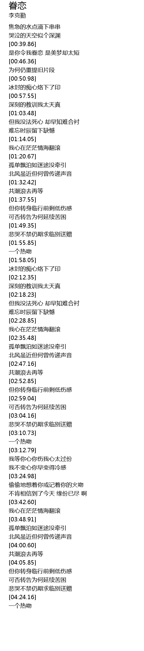 | [00:40.68] | shì nǐ lìng wǒ juàn liàn shì měi mèng què tài duǎn |