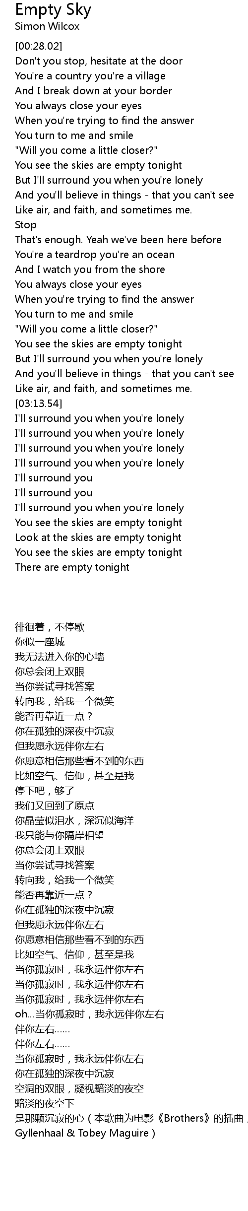 Look at the skies are empty tonight |