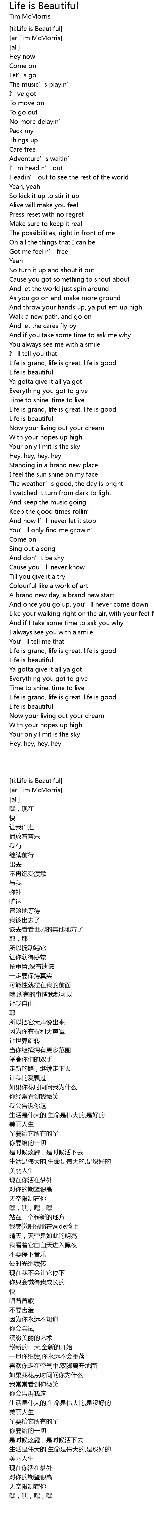 | [00:59.99] | Life is grand, life is great, life is good |