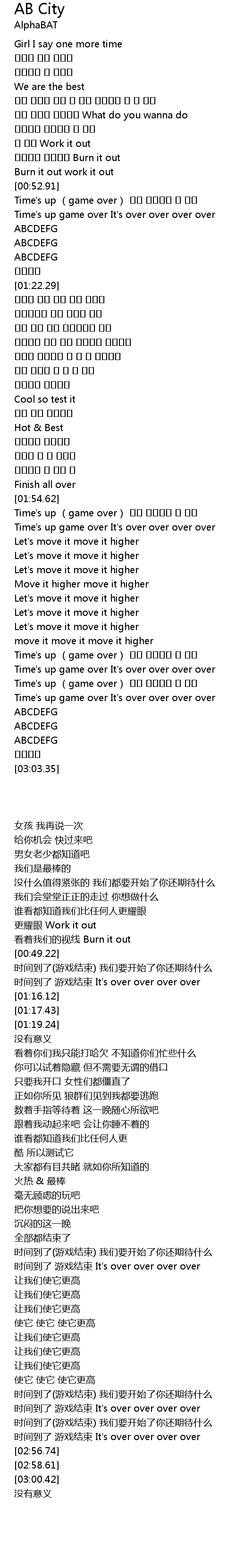 | [01:00.21] | Time's up (game over) 우리 시작인데 뭘 바래 |