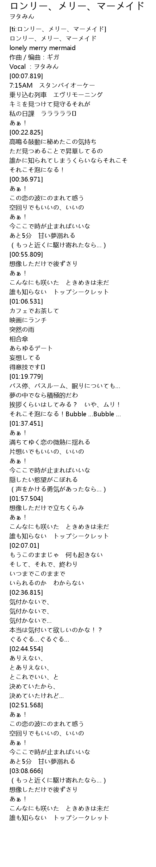 | [00:00.550] | ロンリー、メリー、マーメイド |