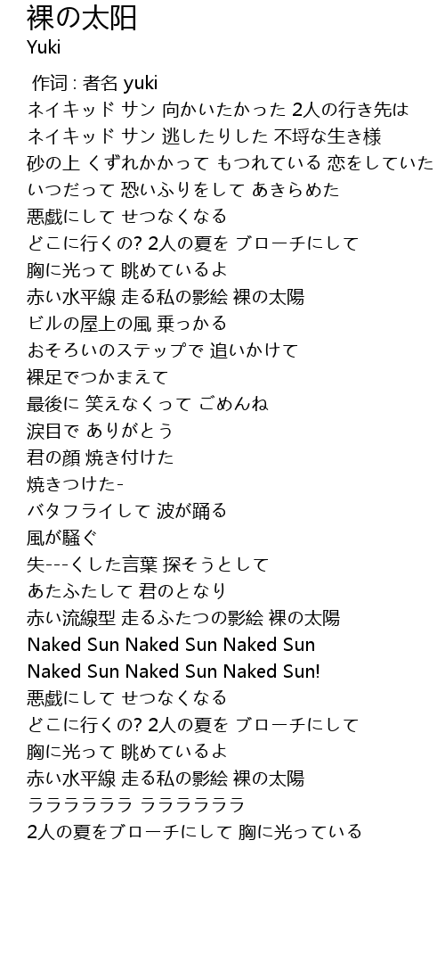 | [03:13.000] | Naked Sun Naked Sun Naked Sun |