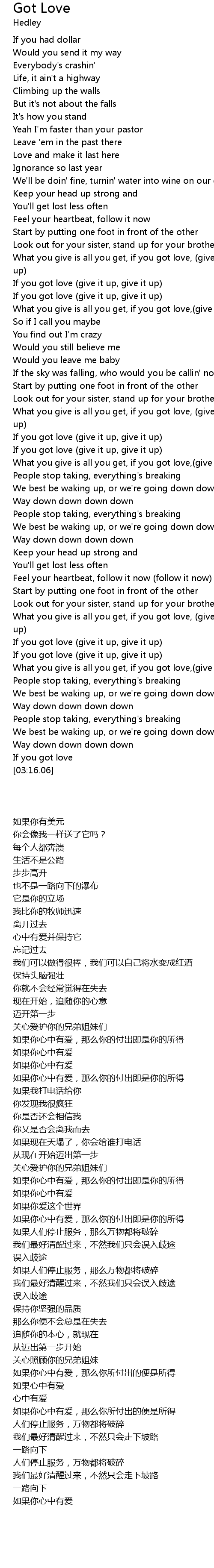 | [00:46.19] | What you give is all you get, if you got love, (give it up, give it up) |