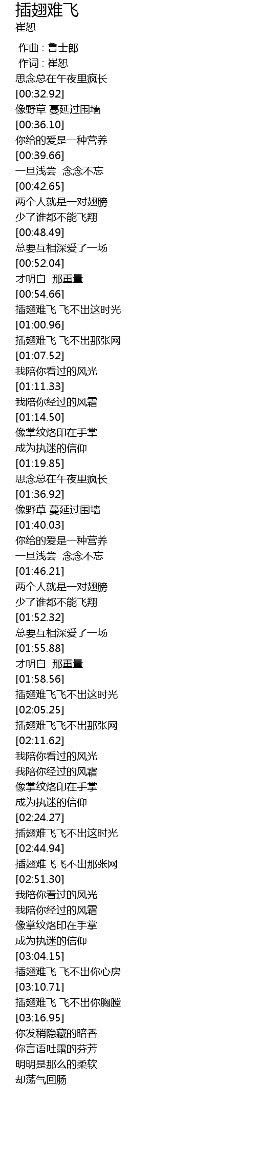 | [00:56.10] | chā chì nán fēi fēi bù chū zhè shí guāng |