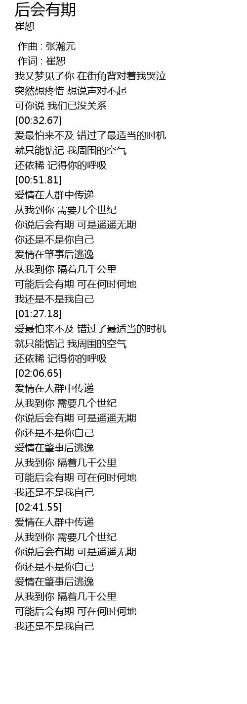 | [02:16.43] | 你说后会有期 可是遥遥无期 |