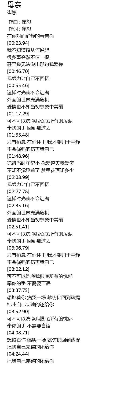 | [04:09.32] | 想抱着你 痛哭一场 就仿佛回到孩提 |