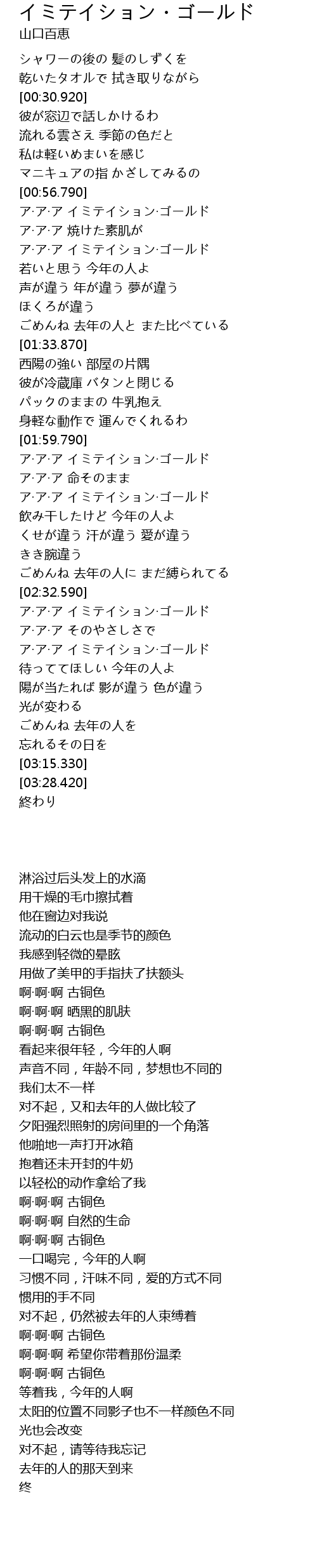 | [02:50.480] | ア·ア·ア イミテイション·ゴールド |