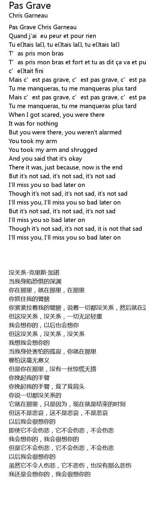 | [00:46.627] | Mais c' est pas grave, c' est pas grave, c' est pas grave |