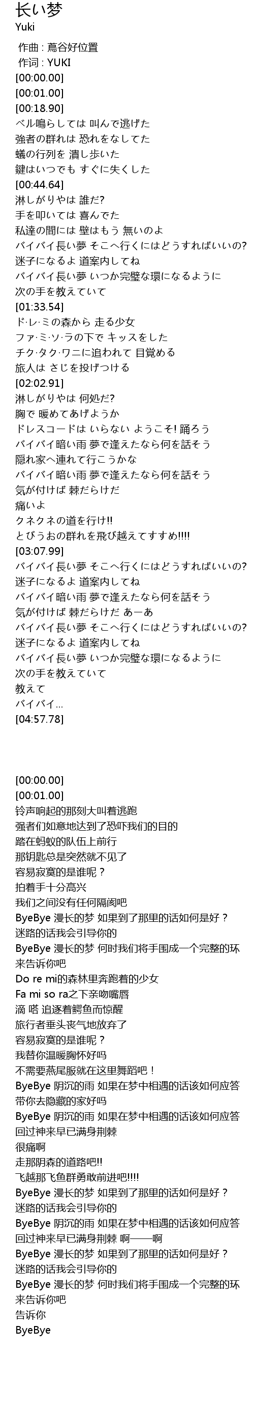 | [03:25.01] | バイバイ長い夢 そこへ行くにはどうすればいいの? |