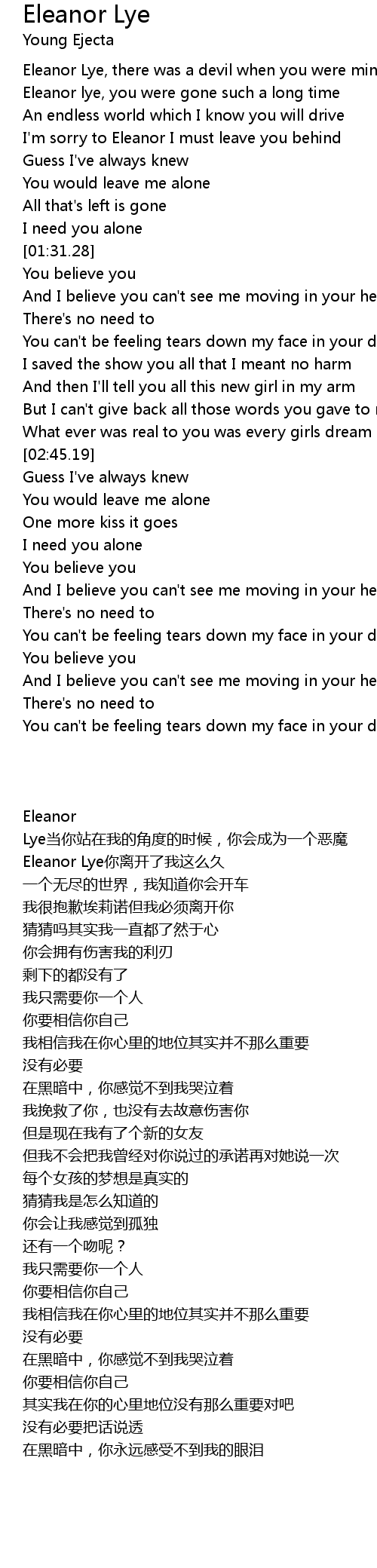 Eleanor lye, you were gone such a long time |
