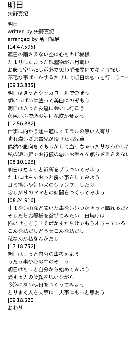 | [01:53.337] | written by 矢野真紀 |